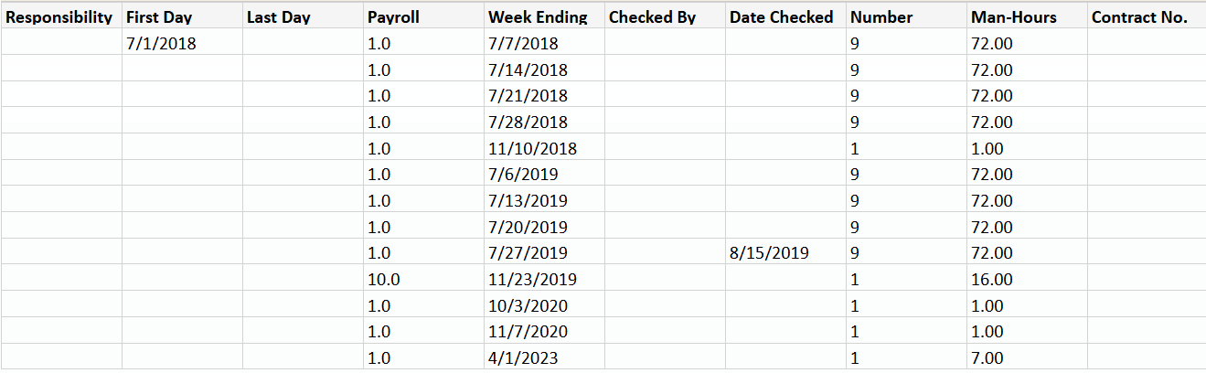 Report Description: this report will show the information that is required by the United States Army Core of Engineers (USACE) to be uploaded in their system. (There is another report within LCPtracker called “ENG3180”. That report is not able to be uploaded into the USACE system. You must use this one if you want to upload.) It shows the following information: