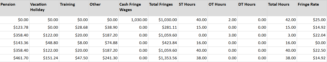 - Total Fringes paid