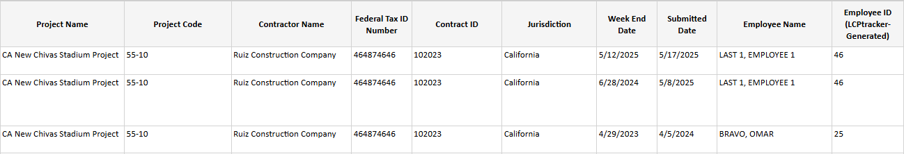 - Employee ID (generated by LCPtracker)