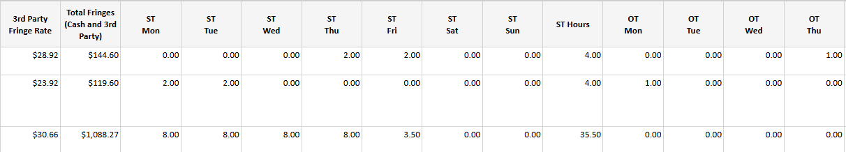 - Total Cash Fringes & Fringe Rate