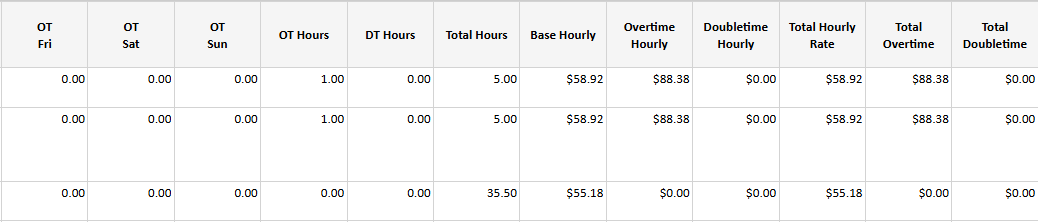 - Base Hourly Rate / OT Rate / DT Rate