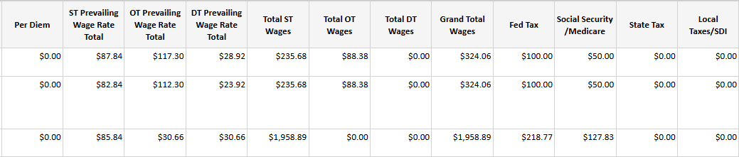 - Total ST / OT / DT Wages