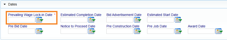 Preconditions: for this report to populate correctly, the prevailing wage lock-in date must be setup first. Set Up tab>Add/Edit Projects>Dates>Prevailing wage lock-in date. The number of days after Prevailing Wage Lock-In Date to be considered New Hire, which is established on the back end with your LCPtracker Customer Success Manager.