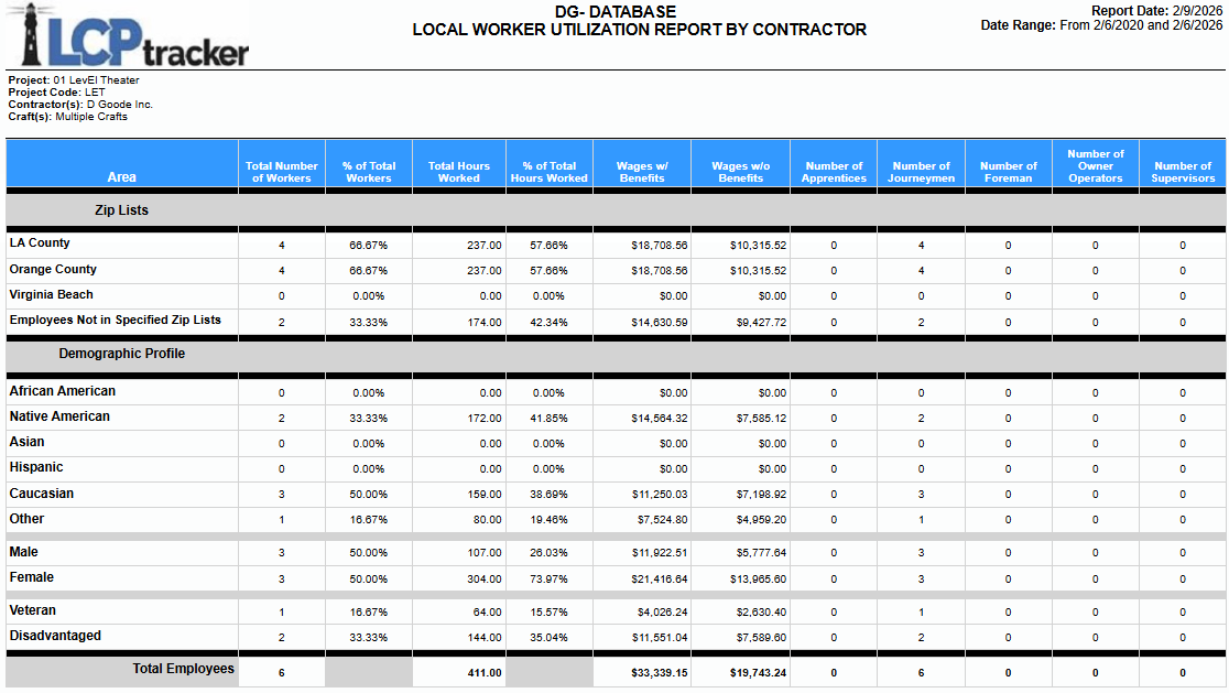 - Disadvantaged status of employees, per zip list