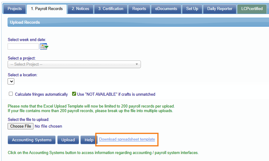 El servicio LCPtracker es un sistema en línea sin papel para ingresar Reportes de pagos Certificados (CPR). Los datos de nómina pueden ingresarse directamente en el sistema o cargarse desde los principales sistemas de contabilidad de construcción o programas de pagos. Este servicio elimina la necesidad de que los contratistas presenten documentos y formularios en papel, al mismo tiempo se proporciona una base de datos en línea que almacena todos los CPR.