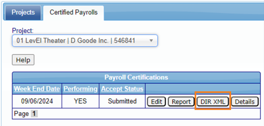 Si realiza trabajo en un proyecto de obras públicas en California, también debe subir su nómina al sistema eCPR del Departamento de Relaciones Industriales (DIR). Una vez que haya certificado su nómina, puede descargar el archivo XML del DIR para subirlo.