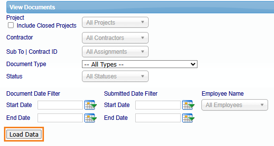 Once filters have been selected, click on Load Data to view the documents that have been uploaded.