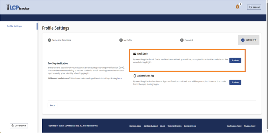 - Seleccione la opción Completar Perfil, esto lo dirigirá a la pantalla de inicio de sesión del portal de usuario de LCPtracker.