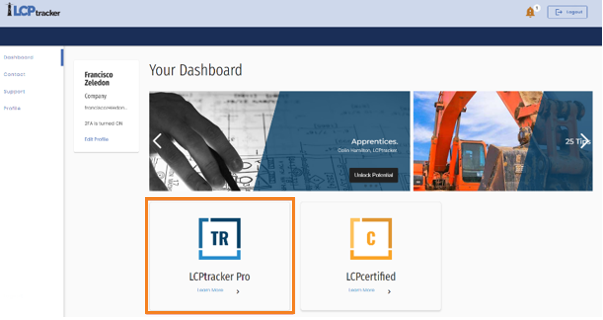 A continuación, se le redirigirá al panel del portal de usuarios. Puede hacer clic en el mosaico LCPtracker Pro para acceder a su cuenta.