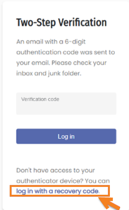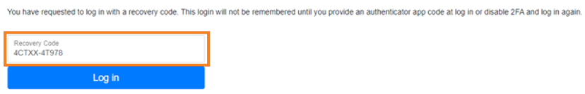 - Ingrese el código de recuperación y seleccione Iniciar sesión.