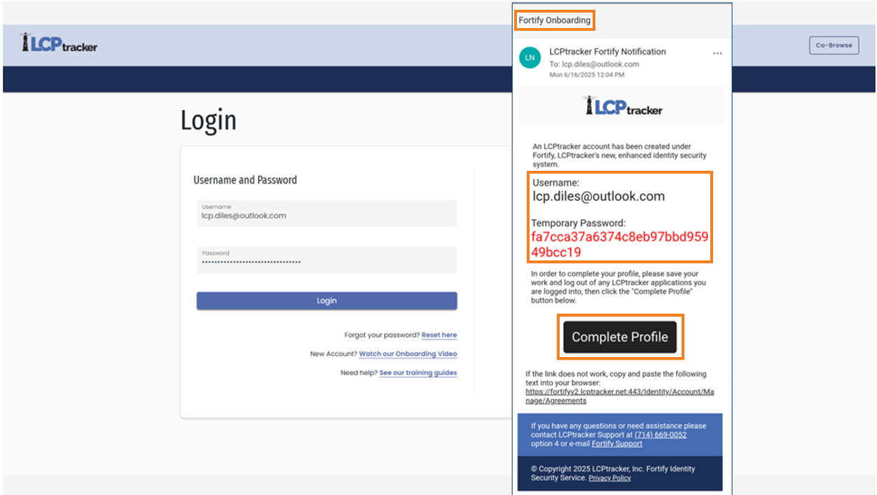 Subject: Fortify Onboarding – this email is where you will begin your Fortify onboarding process. The Onboarding email will include a Username and Temporary Password.