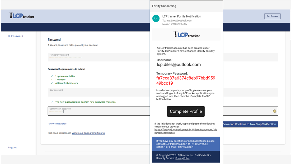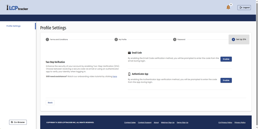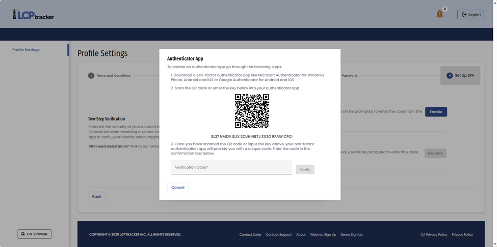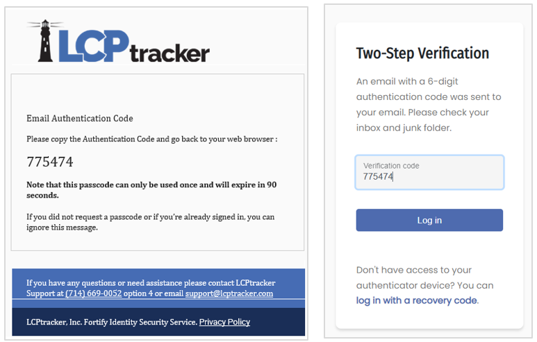 Fortify simplifies authentication while offering modern security practices including Two-Factor Authentication (2FA), a subset of Multi-Factor Authentication (MFA), and external logins, allowing users to authenticate into LCPtracker products through trusted Third-Party Authenticators (TPA).
