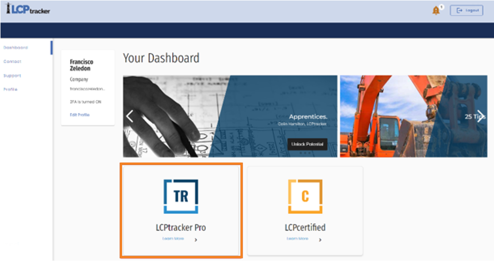 You will then be redirected to the User Portal Dashboard. You can click on the LCPtracker Pro tile to access your account.