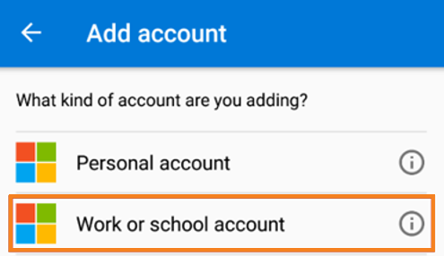 - Open the Microsoft Authenticator app and select the Add account button and tap Work or school account.
