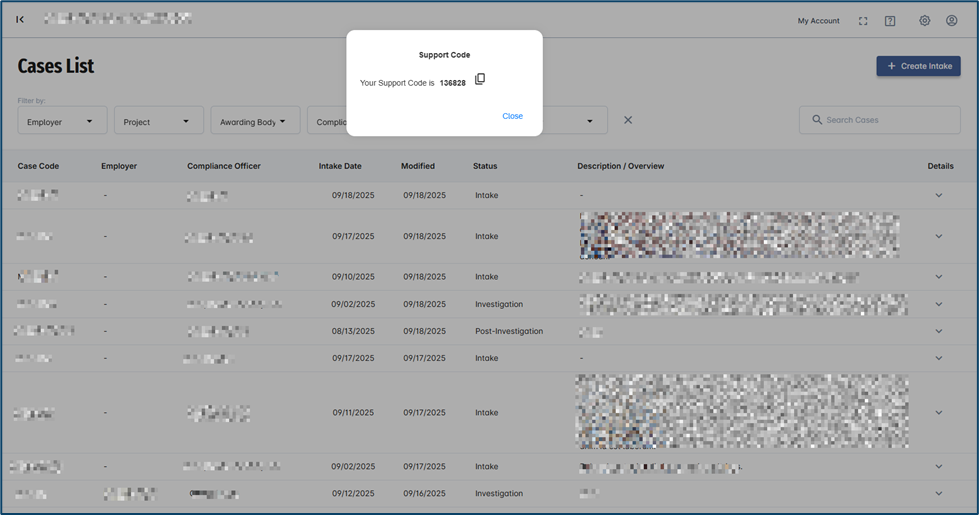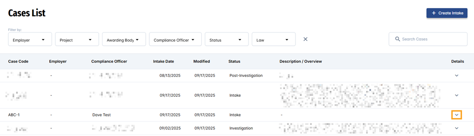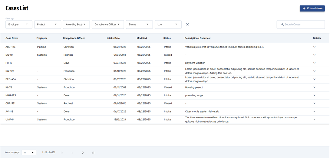 - Compliance Officer – Displays only cases linked to a selected Compliance Officer.