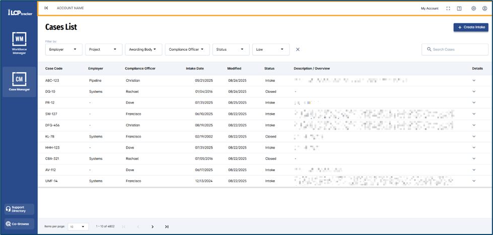 - My Account: This option allows you to exit Case Manager by redirecting you to the user portal for quick access to other products that the user has within the LCPtracker product suite by following the steps below: