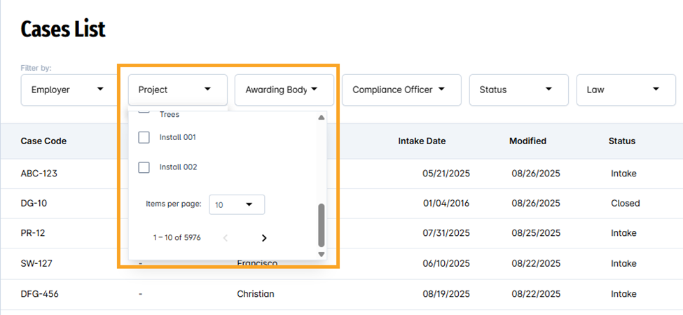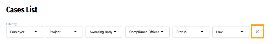 You can see the available filters in the following:- Employer – Filters the list to show only cases related to a selected employer.