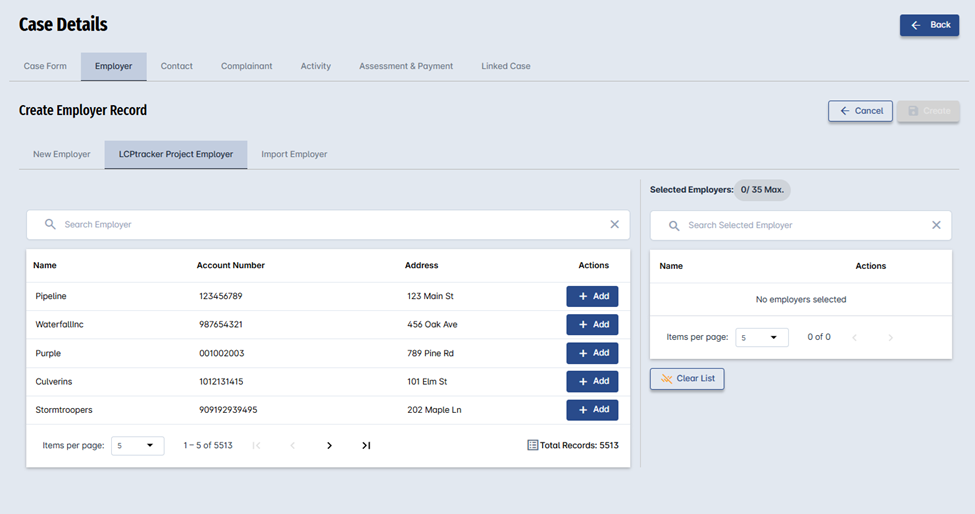 - Employer Library Updates: Every time a new employer is added to a case, they are automatically saved to the employer library. This allows for easy reuse in future cases without needing to re-enter their information.