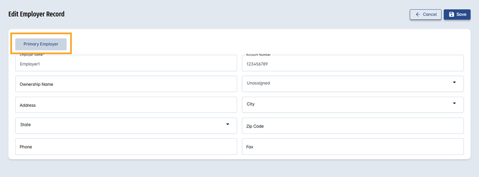 If the selected record is the Primary Employer, an indicator will be shown at the top of the form to highlight this status.