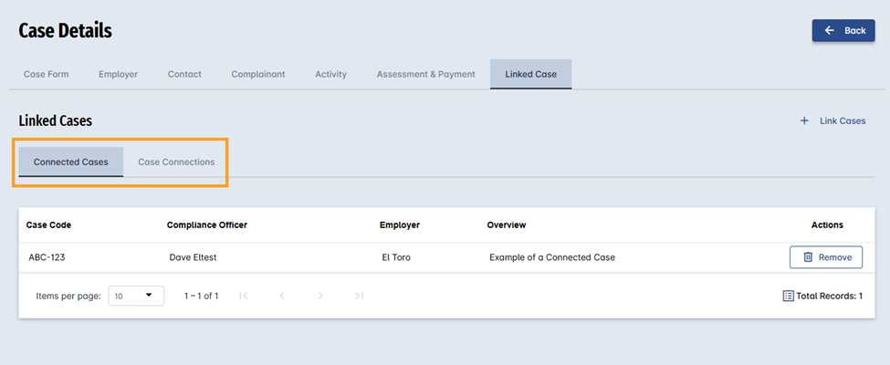 - Improve reporting accuracy, as linked cases are reflected in both the “Connected Cases” and “Cases Connected” tabs, depending on who initiated the link.