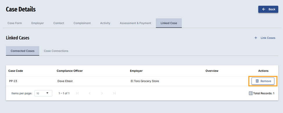Linking cases helps compliance officers and investigators maintain a complete view of employer activity across multiple infractions. When cases involving the same employer or related issues are connected, users can: