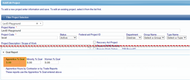 Precondiciones: para que se calcule el porcentaje de meta, se debe ingresar el % de Meta de Aprendiz en Set Up>Add/Edit Project.