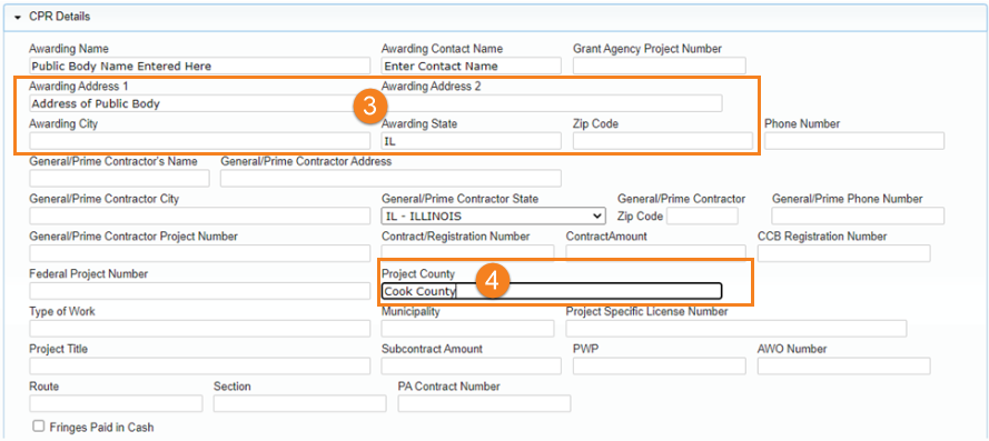 - Enter in a Project County under the CPR Details section. This should be a County in Illinois where your project is located.