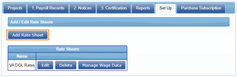 This set up step only needs to be done once and then can be used for all future payrolls going forward. Navigate to your Set Up tab and select Add/Edit Rate Sheets.