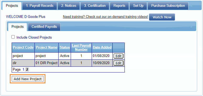 The following is a quick guide to create a project, enter payroll information, certify payroll and add rate sheets in LCPcertified. The login portal for LCPcertified can be located here.