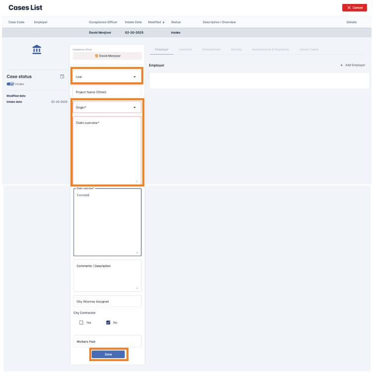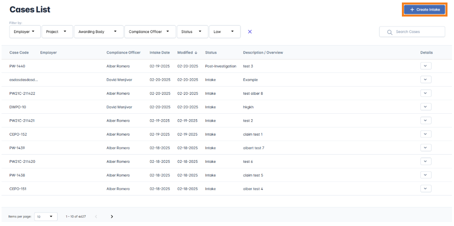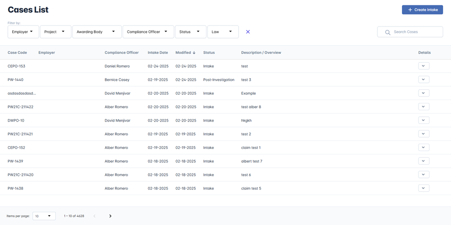 - Open Case Manager: A table will open with all the cases you have permissions to view.