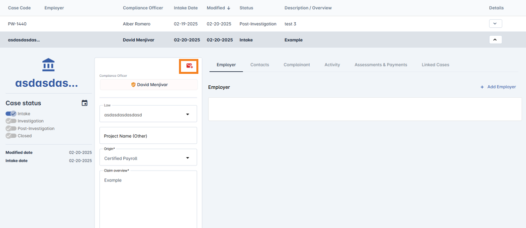 - Resend Email if Needed: If there's a problem sending the email, click the icon at the top of the case description to try again.