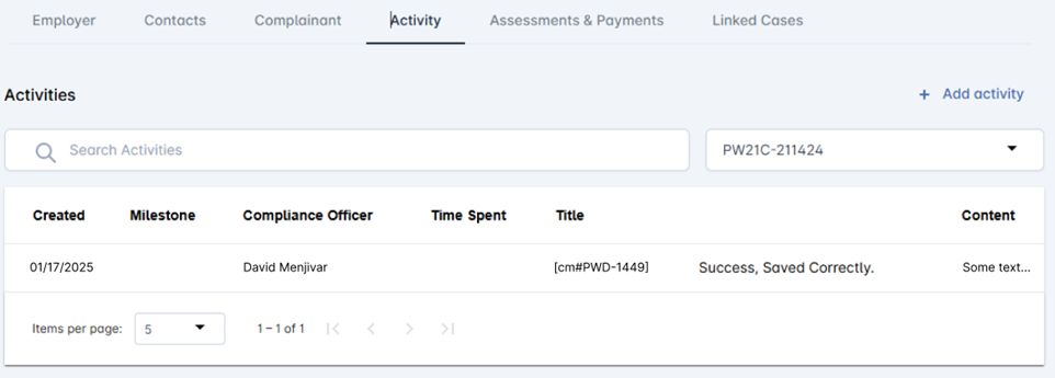 - Check activity log: In the details tab, go to the activity section to see the log showing the case creation details.