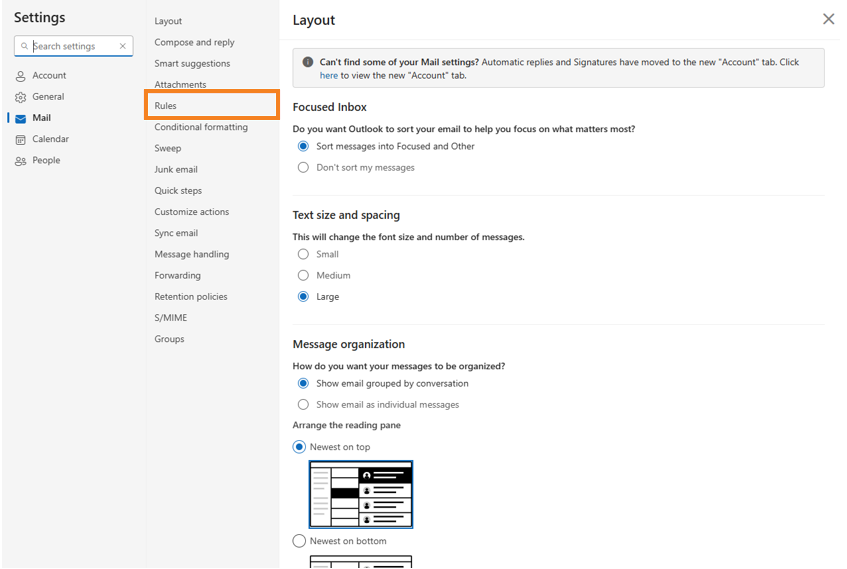 - Access Email Settings: Go to the email service (Outlook, Gmail, etc.), go to the settings and locate the rules for emails.