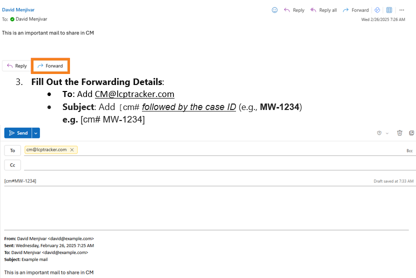 - Subject: Add [cm# followed by the case ID (e.g., MW-1234)