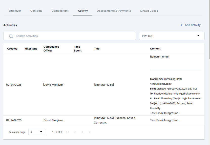 - Locate the Case: find the case forwarded and click on the activity tab to view the forwarded email.