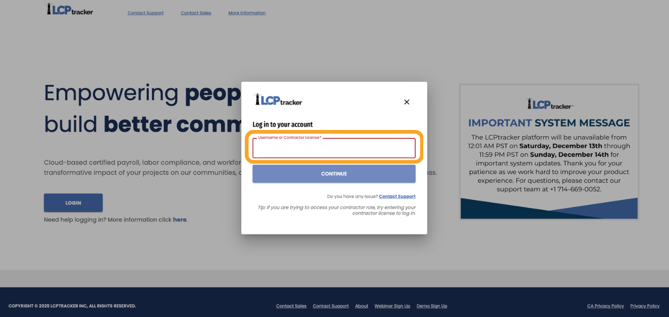 Add username or Contractor License