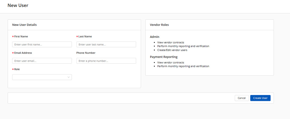You will then fill out the required fields and click the Create User button at the bottom.