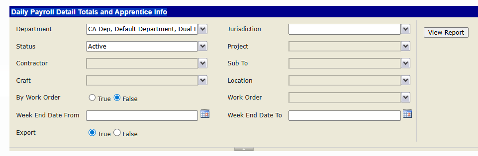 Report Description: this report gives you a breakdown of individual employees for the week end date you specify, by project and by contractor, alongside their apprentice information if available*. It shows the following information: