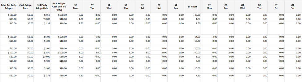 - Gross pay, other deductions, and rate in lieu of fringes