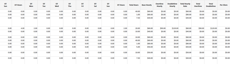 - Payroll date, project name, project code and word order number