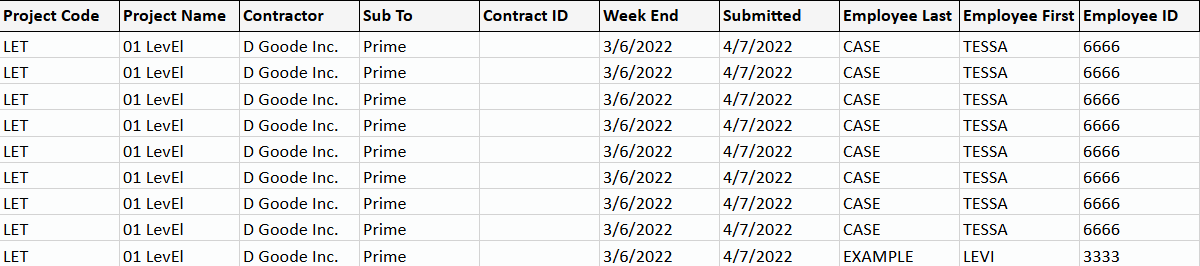 Descripción del Informe: este informe muestra la información del Admin relacionada con los avisos dentro de LCPtracker. Cuando se activa una validación para un proyecto, contratista, subcontratista o empleado, el Admin podrá ver si ese aviso fue eliminado y quién lo eliminó. Si el aviso fue resuelto, este informe indicará quién lo resolvió y la razón proporcionada para esa resolución. El informe muestra la siguiente información: