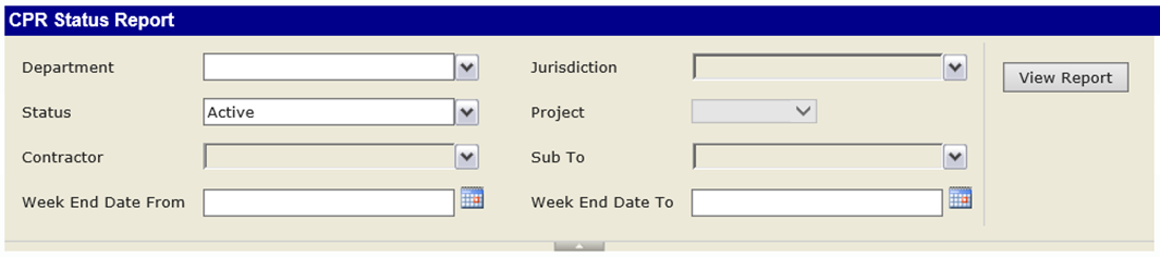 Descripción del Informe: este informe es una vista general del estado de tus presentaciones de nóminas certificadas (CPRs). Muestra los contratistas que han enviado CPRs para el rango de fechas de Fin de Semana, los CPRs rechazados o pendientes, y finalmente una lista de contratistas cuyo último CPR enviado no está marcado como final y cuya fecha de fin de semana cae 42 días (o más) antes de la fecha ingresada en el parámetro Fecha Hasta. Los contratistas sin CPRs enviados también aparecen en la lista de Delinquent. Para los contratistas en estatus Delinquent cuya Fecha de Inicio cae 84 días o más antes de la Fecha Hasta, sus nombres se resaltarán en rojo. El informe mostrará la siguiente información: