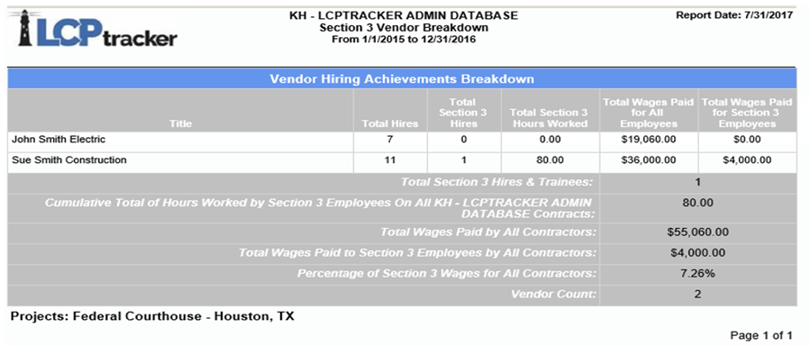 - Porcentaje de salarios Section 3 para todos los contratistas.
