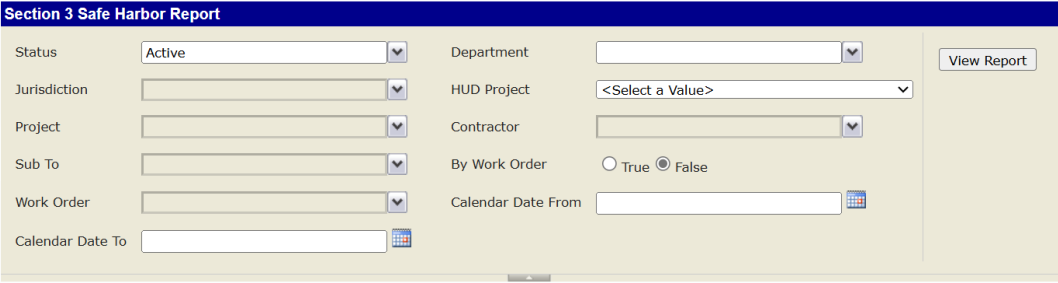 Report Description: this report was designed to display the new requirements for Section 3 Workers as well as Targeted Section 3 Workers. Based on the demographic classification selection for each employee and the assignment to a specific project, this report takes the hours for the project and generates the % of the employees that fit into one of the two categories for reporting to HUD.