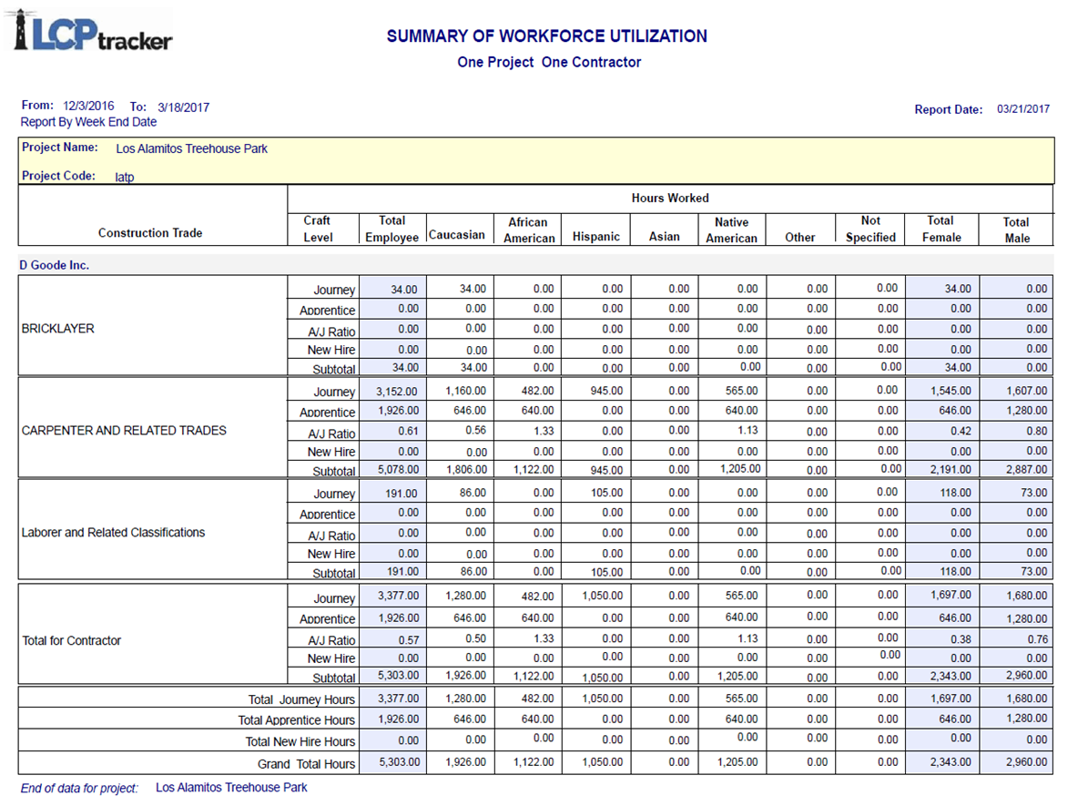 - Total de horas trabajadas por los empleados, por oficio de la construcción, por etnicidad.
